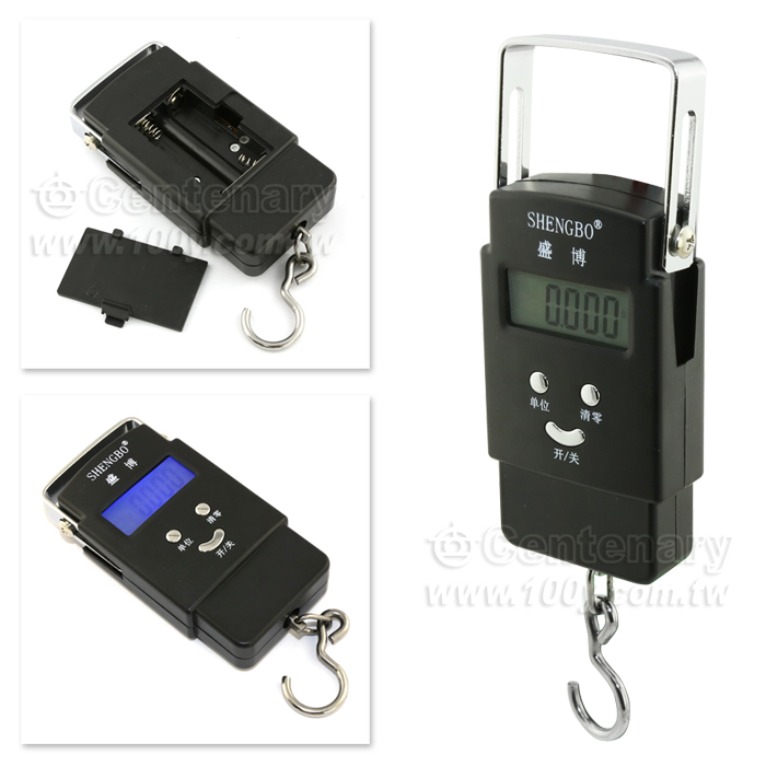 產品名稱;電子手提秤 大方秤(帶藍色背景燈) 【產品材質】ABS工程塑料外殼+精鋼掛?+高強度精鋼提手【最大承重】50公斤,分度值為10克【稱量單位】kg(公斤)、lb(磅)、市斤、oz(盎司)四種單位(1kg=2市斤=2.2lb=35.3oz) 【誤差範圍】0-20克【產品尺寸】長10 cm x 寬5.5cm x 高2 cm 【包裝尺寸】長17 cm x 寬10 cm x 高3 cm 【產品重量】180克【產品配件】手提秤1個,七號電池2塊、中文說明書1張,合格證1張附秤體上