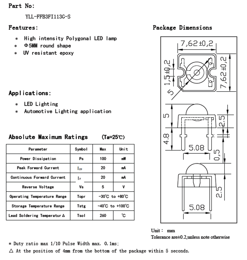 5mm 食人魚 藍光9*13mil芯片,1000-1200mcd
