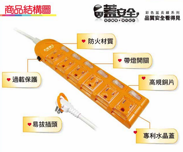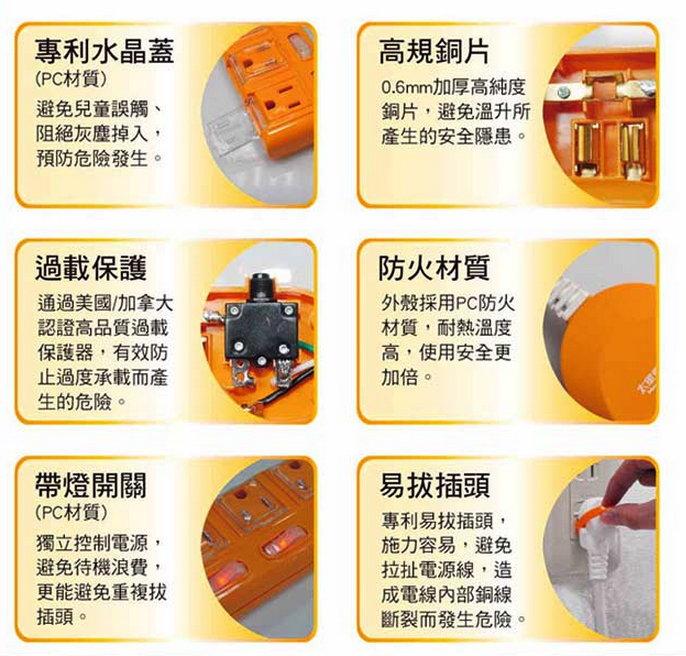 立管理,更俱備專利水晶蓋,加上高規銅片及過載保護;還有省力易拔扁平插頭,讓您使用時非常安全又平
