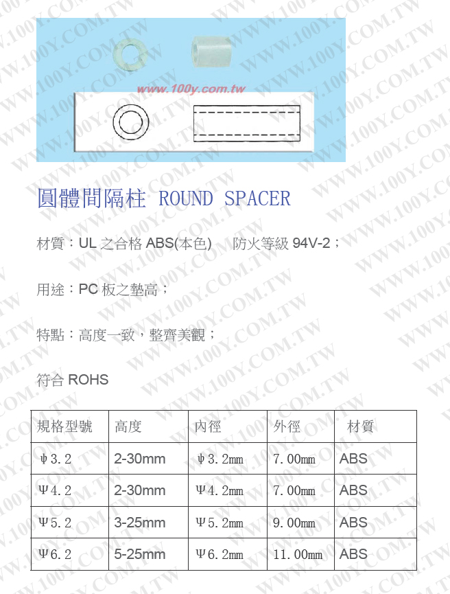 圓体間隔柱外徑ψ7.0mm 內徑ψ4.2mm H:5mm