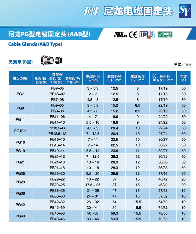 PG式電纜固定頭Cable Range 6~12mm
