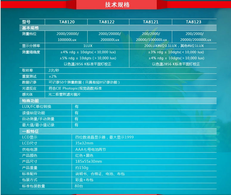 TA8123 數字式照度計一體式