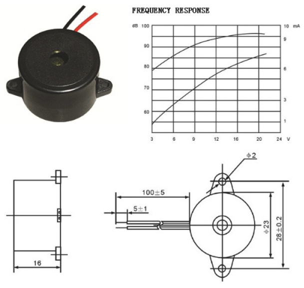 壓電式有源蜂鳴器連續聲24V/8mA 90dB