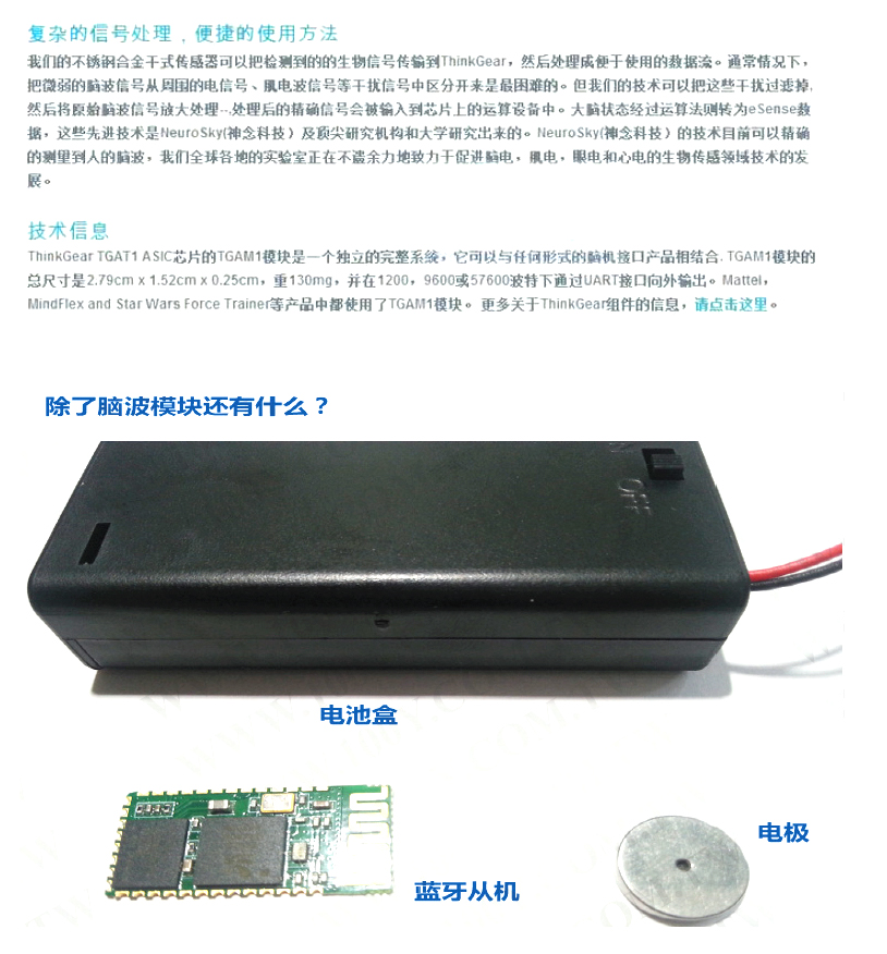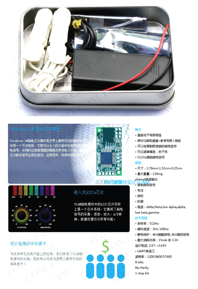 神念科技NeuroSky藍牙腦波模組TGAM套件