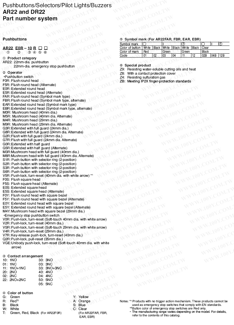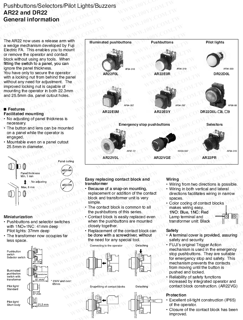 φ22富士_復歸40mm蘑菇頭按鈕開關 1NO 黃