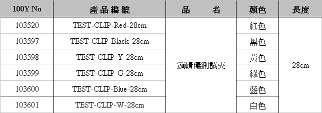 測試夾顏色有6種:紅、黑、黃、綠、藍、白色可供選擇