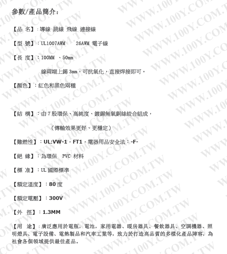 26AWG 雙頭上錫3mm 長50mm 紅色 7/0.16