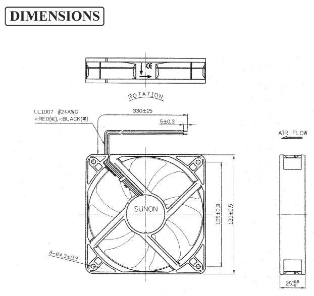 SUNON_DC12V 帶線式風扇 120*120*25mm