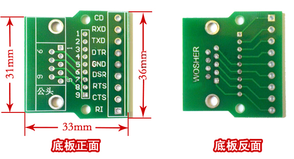 註:模塊分串口公頭和串口母頭,它們的底板是不一樣的