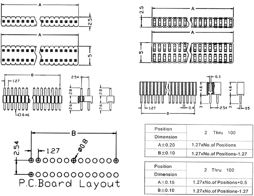 排針母座 Pitch:1.27mm (黑座高4.3mm) 180°