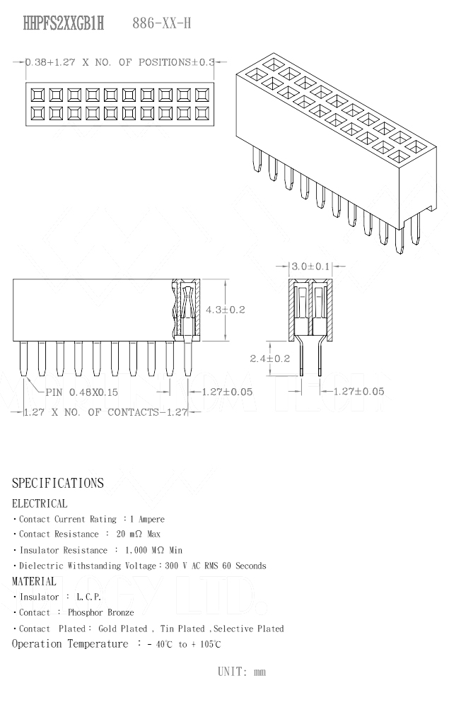64P(2*32) 排針母座 Pitch:1.27【ROHS】