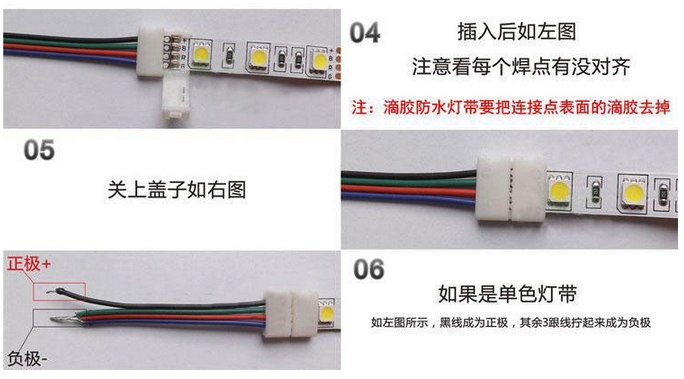 裸版燈條用的連接器也可以用在滴膠燈條上只需要把滴膠刮去一點點就可以使用