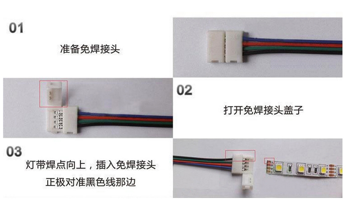 七彩燈帶免焊連接頭可以簡易的把從燈帶指定的地方剪斷後的燈帶再連接起來,以符合用戶所需要的實際長度