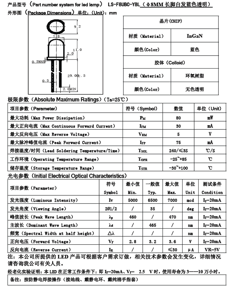 圓頭藍色LED