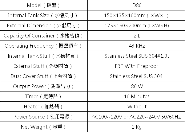 台灣製,利用隔板式振盪器來清洗物品,不傷物品本體,又可除去污垢。
