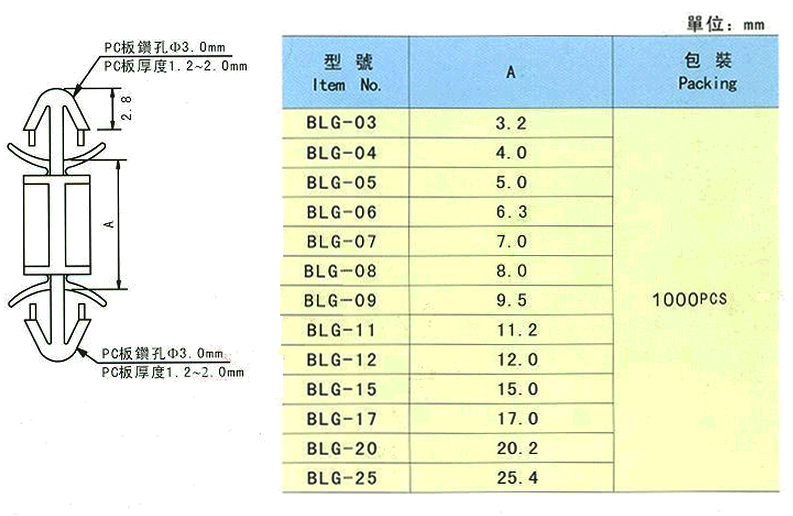 BLG系列  PC板間隔