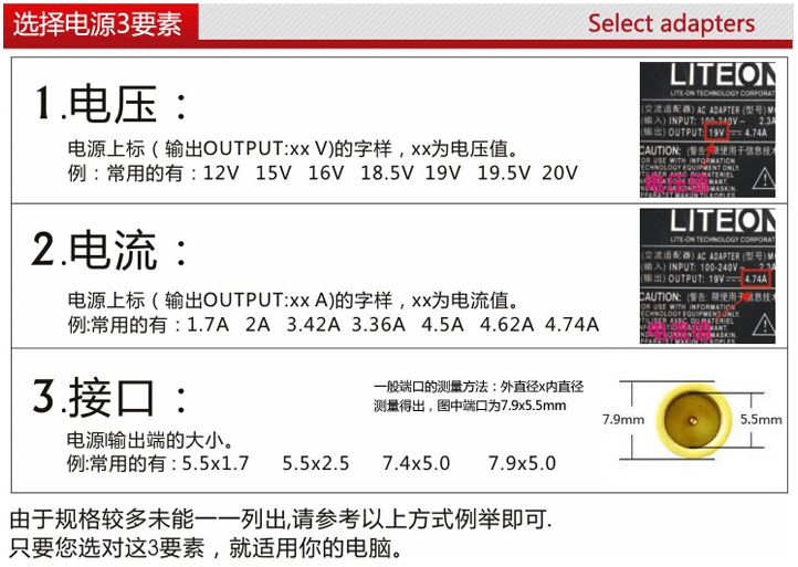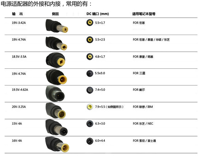 6 公頭為5.5*2.5mm常用接口 適用於很多品牌的筆記本、液晶顯示器等