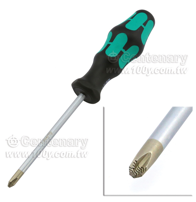 應用在十字螺絲起子。刀頭為鍍鈦,鐳射怪牙。刀身圓形