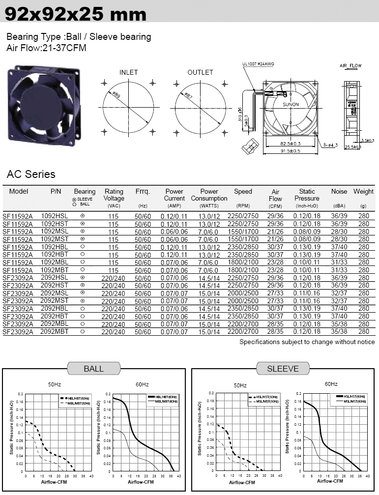 230VAC風扇92*92*25mm【ROHS】
