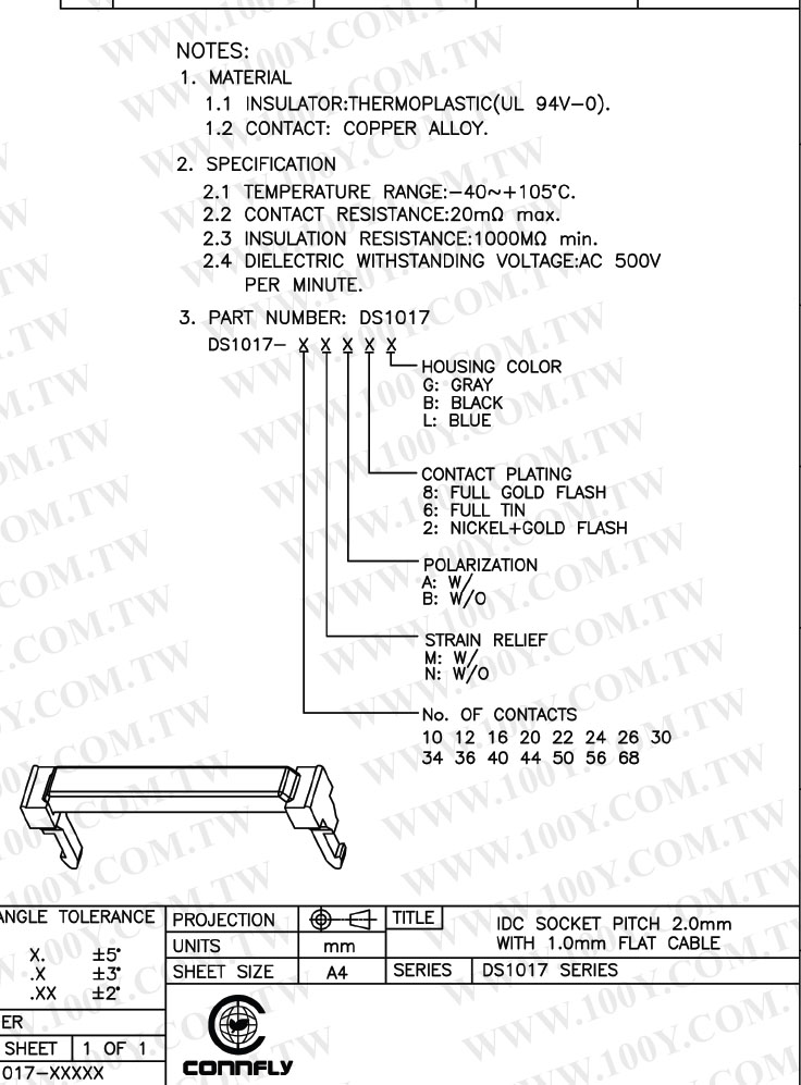母插頭2.0mm/10P
