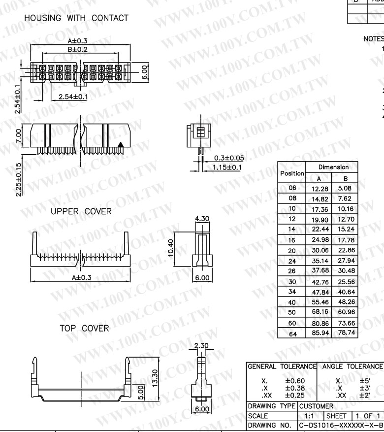 10P_IDC 母插頭 P:2.54mm【ROHS】(三件式)