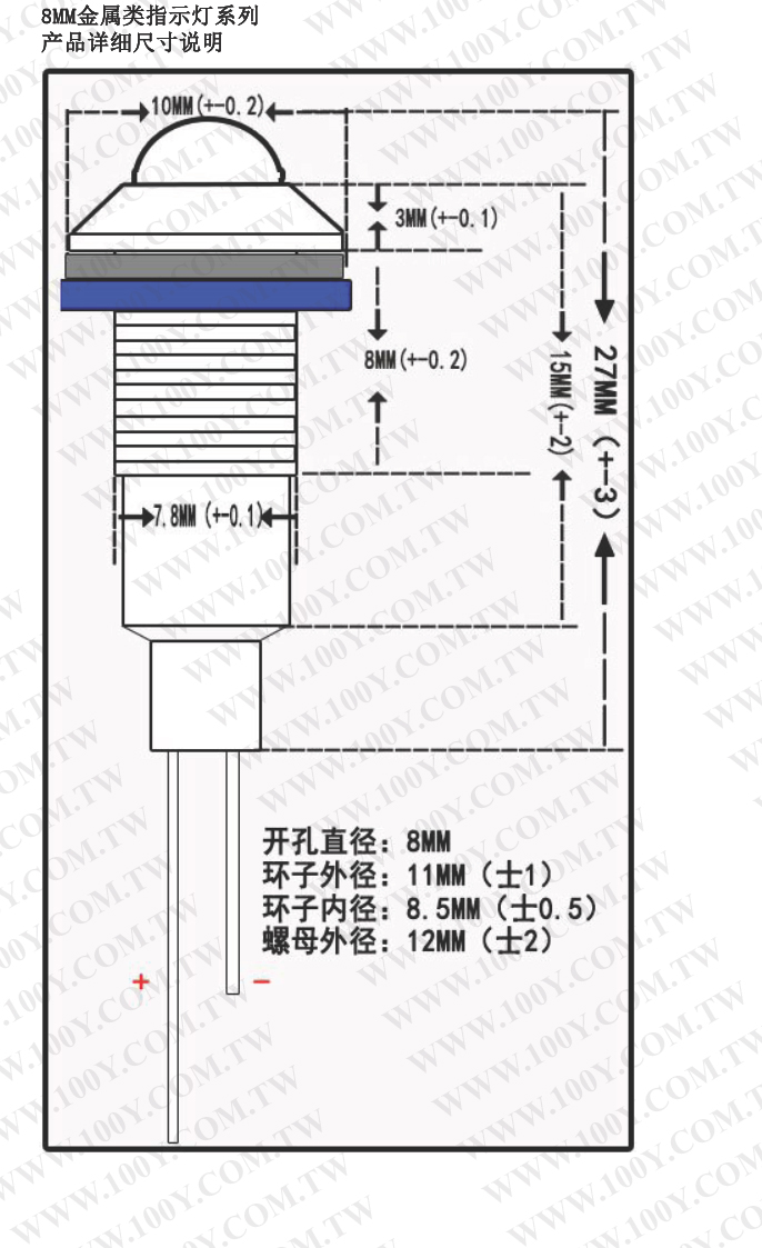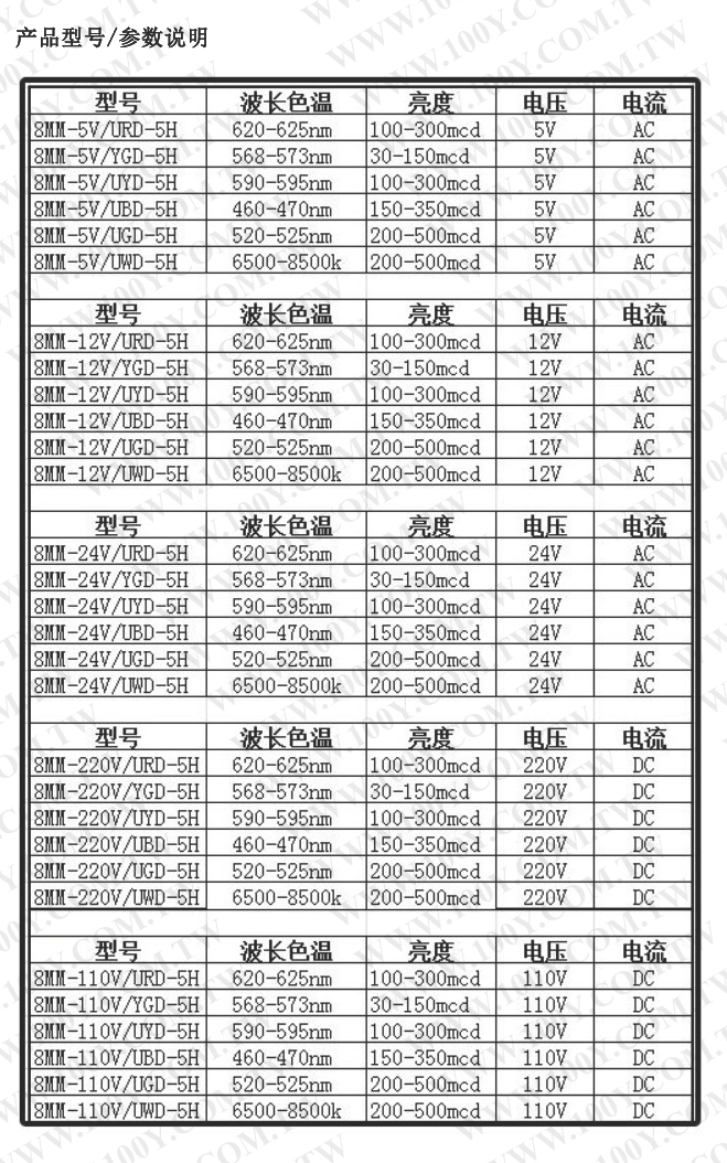 Φ6mm 5V 黃色 LED金屬指示燈