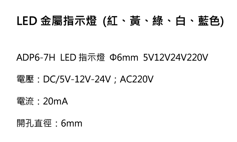 Φ6mm 24V 黃色 LED金屬指示燈