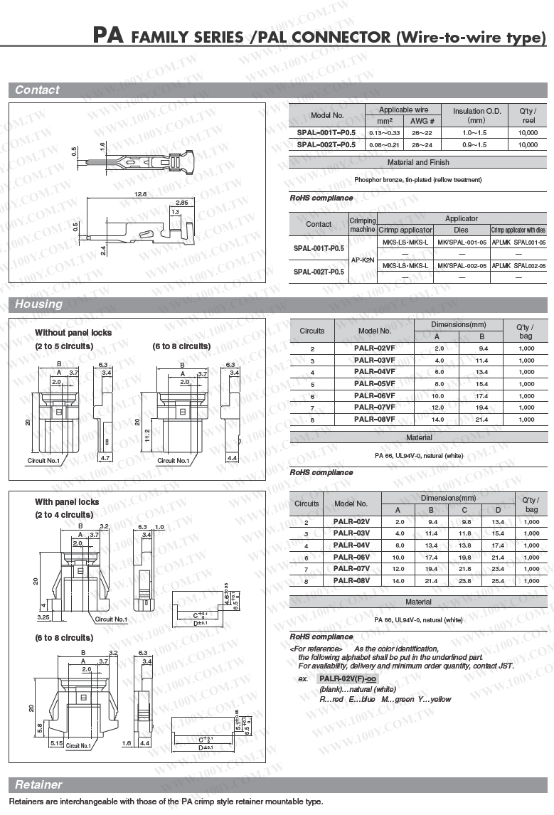 JST_PA 5P公頭 P:2.0mm無面板鎖