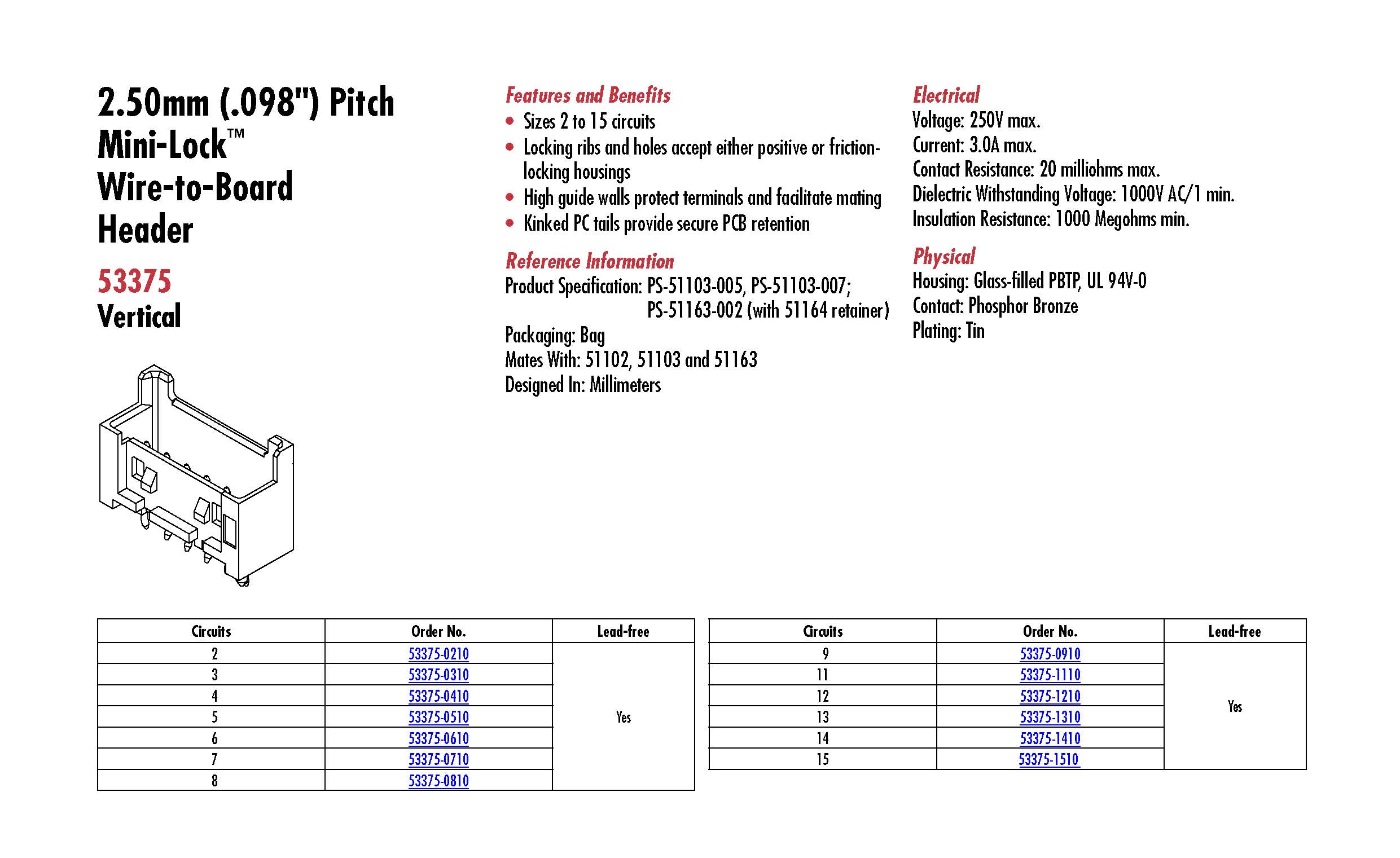 壓接外殼插頭 Mini-Lock P:2.5mm 5P