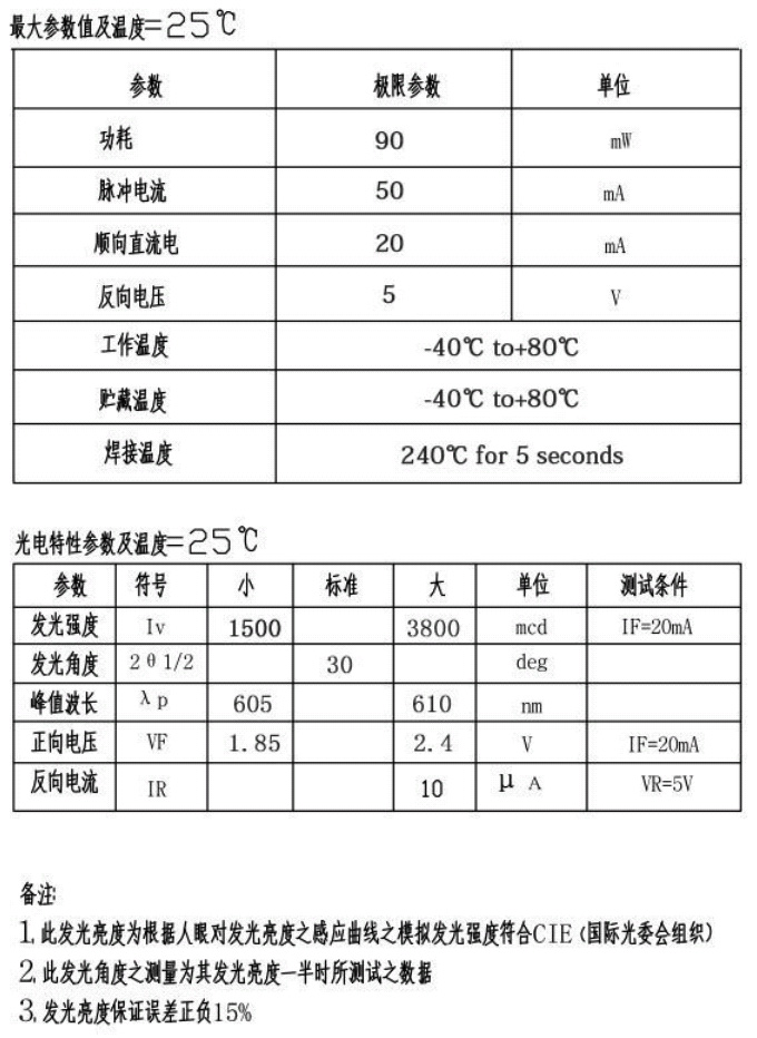 φ5 黃色 (琥珀色) 1500-3800mcd
