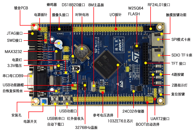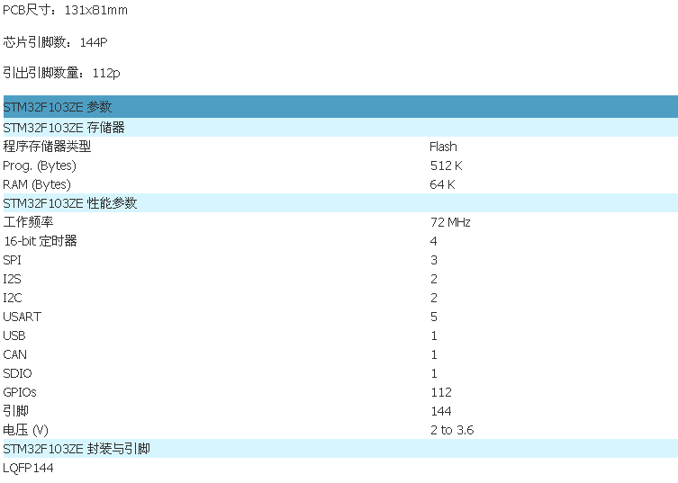 • 使用Cotex-M3核晶片,STM32F103ZET6