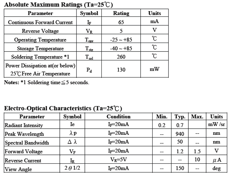 0.8mm SMD紅外線發射器 940nm