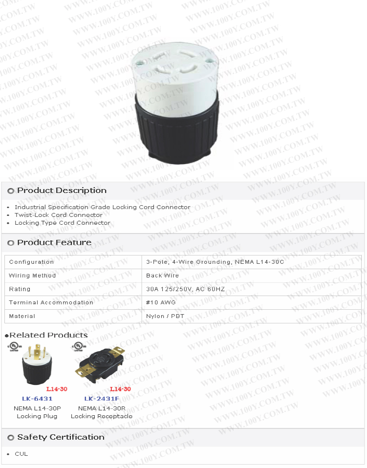 L14-30C 引掛式中間母插4P 30A / 125/250V
