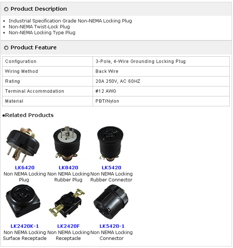 LK6420-A 4P20A 引掛式插頭 (美式)