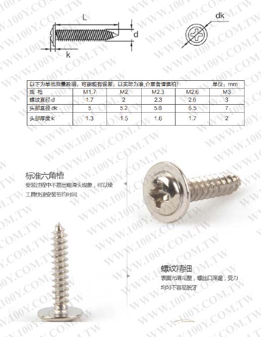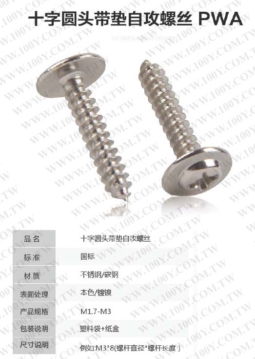圓頭附華司束尾十字 鍍鎳螺絲