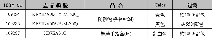 • 特別注明:黑色手指套300G/包 (約550個/包),其他是500G/包