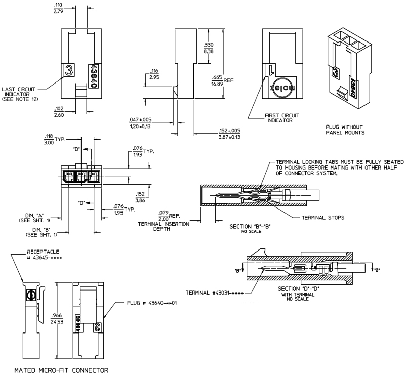 Micro-Fit 3.0/43640-3P-3.0mm-公插頭 無耳