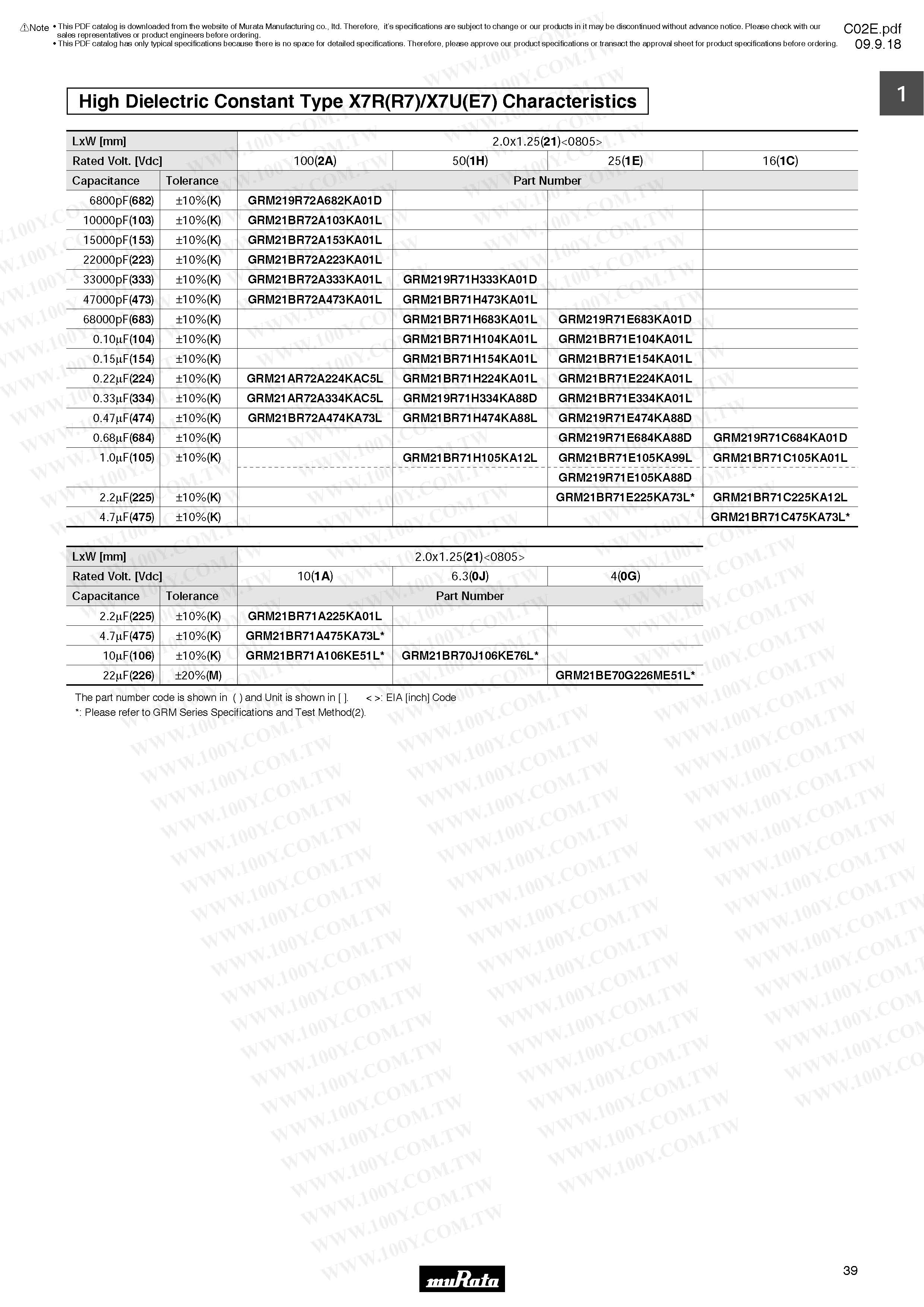 通用0.33 µF ±10% 50V 陶瓷電容器 X7R 0805(2012 公制)