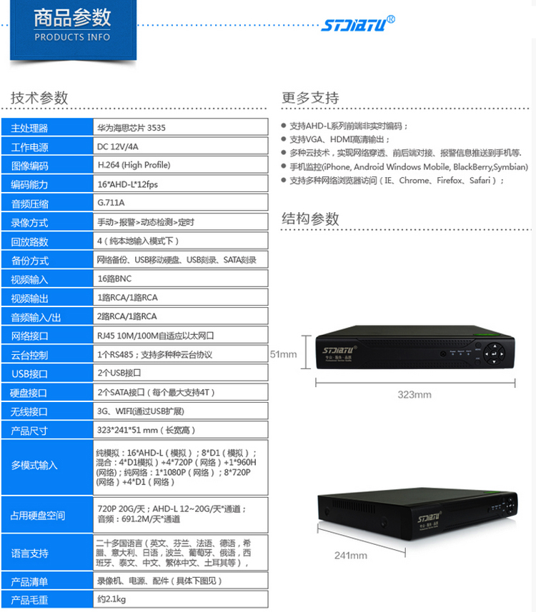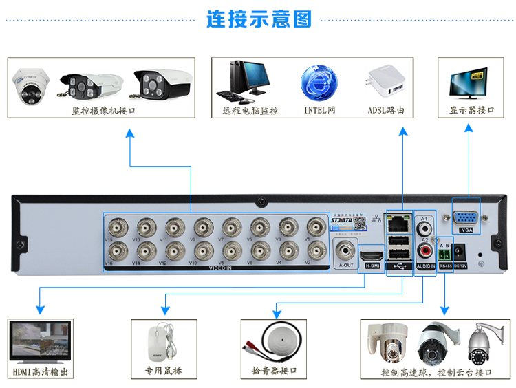 多模式輸入:純模擬:16*AHD-L ;模擬:16*D1;(數字高清+模擬):8*AHD-L+8*720P (網絡)