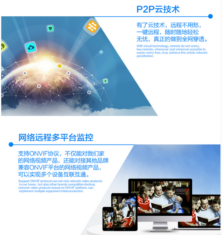支援多種雲技術,實現網絡穿透、前後端對接、報警信息推送到手機等功能