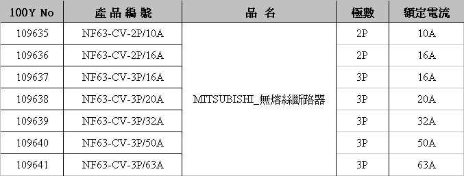 MITSUBISHI_NF63 系列 無熔絲斷路器