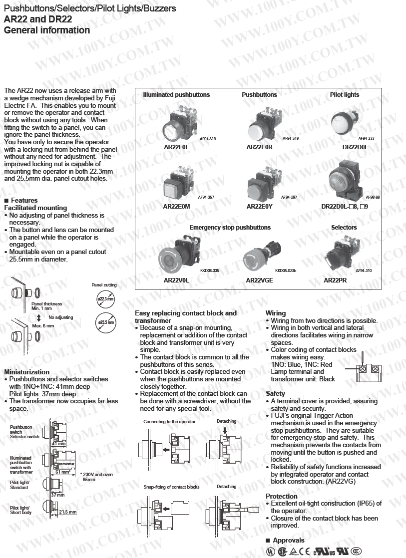 30mm 緊急按鈕開關 1NO+1NC LED 24V 紅色