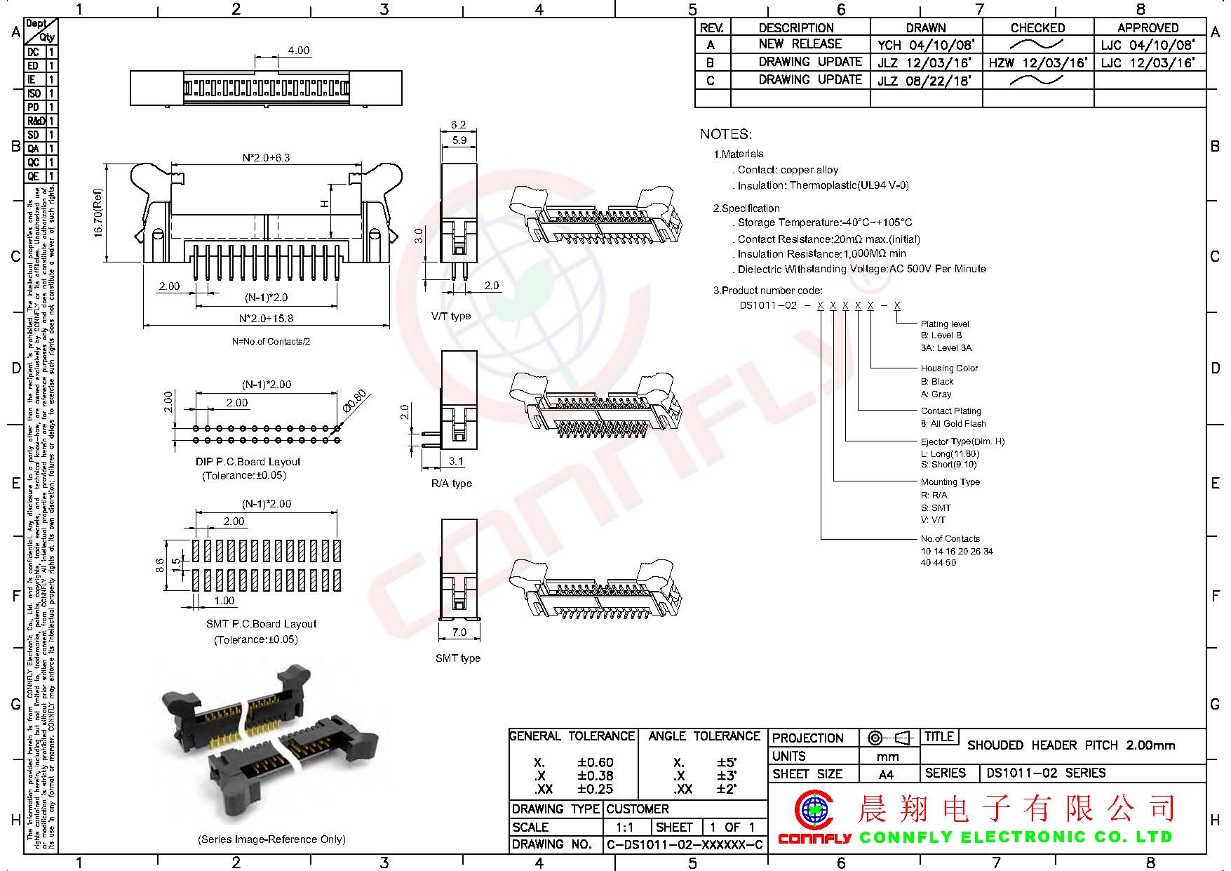 44P IDC牛角公座 90° P:2.0mm