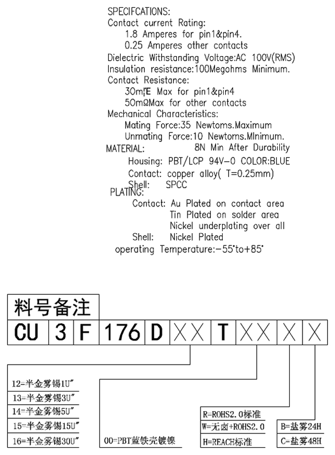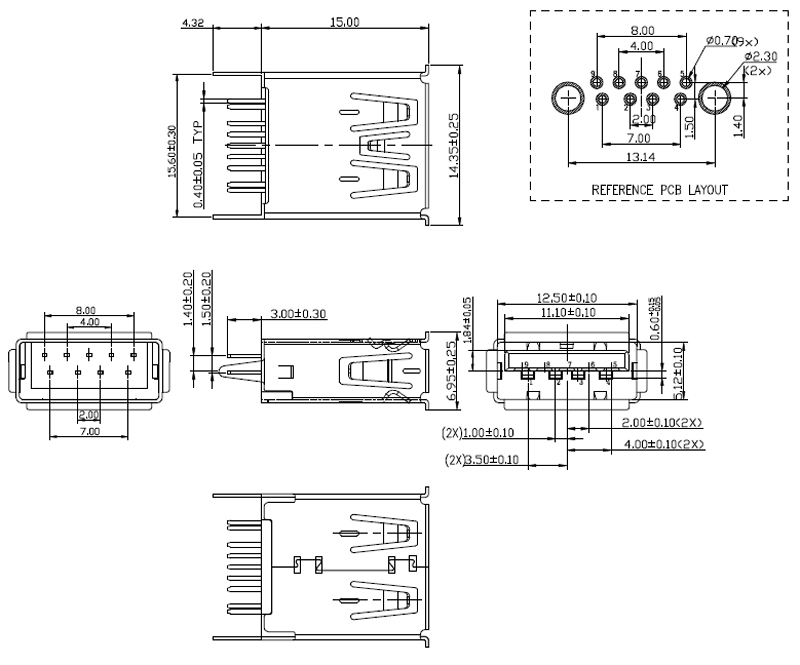 USB3.0-AF-180-DIP-卷邊-14.9mm