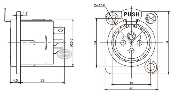 ● 母座前面尺寸26x31,深度22,公座前面尺寸26x31,深度22