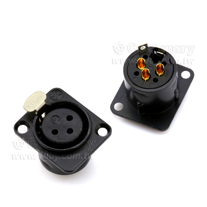 鍍金3芯卡儂母插座/D型面板安裝短尾