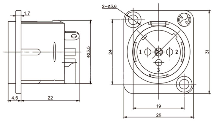 鍍金3芯卡儂公插座/面板安裝AVSOUND