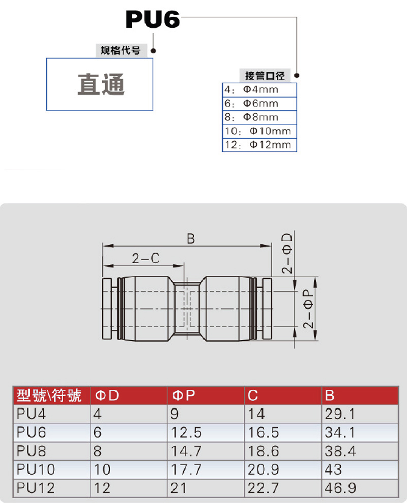 氣動快速兩通接頭