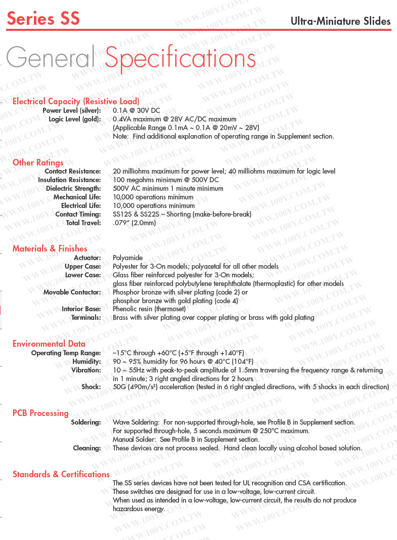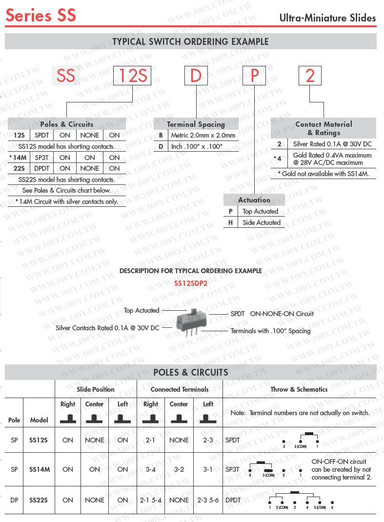 滑動開關 DPDT 0.1A/30VDC