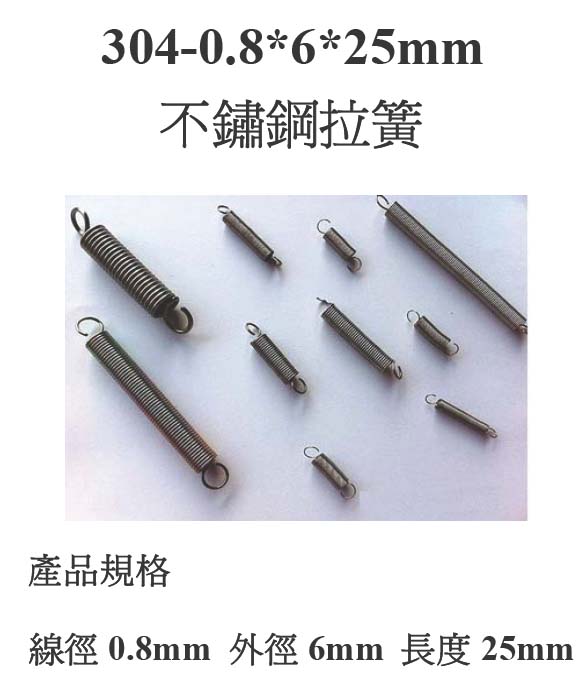 不鏽鋼拉簧 線徑0.8mm 外徑6mm 長度25mm